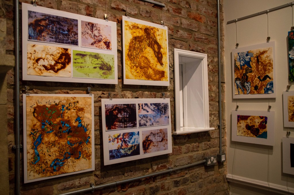 At the end of November 2025 we held a two-day pop-up exhibition in Mytholmroyd, which displayed work created by participants in the workshops, along with creative work from the project team itself. This was held at The Local Motive, at the old railway station building in Mytholmroyd, and was open to the general public.