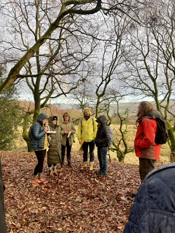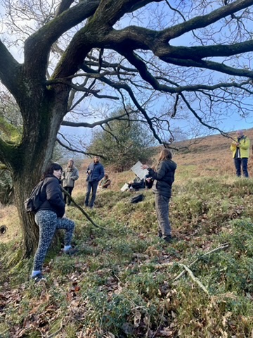 Calderdale College arts access mature students were invited to two workshop days. One was held at Ogden Water Nature Reserve, where Gill Wrigley and Sheila Tilmouth talked about the ecology of moorlands, the practicalities of growing and propagating sphagnum moss and rewetting moorland landscapes. Students were invited to visit the trial rewetting site and plant plugs of sphagnum moss.