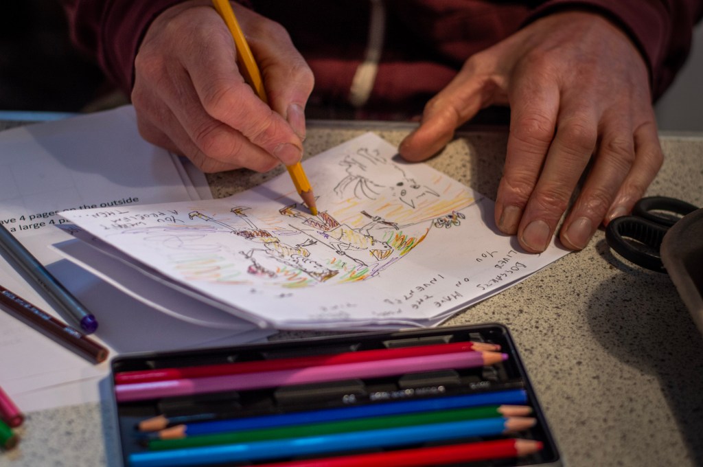 Originally, one of the sessions had been planned to be held for the local Explorers (14-18 year olds) group but unfortunately take-up was very low so that was cancelled and replanned as a public event. Participants were asked to share what they created in the sessions, and some of these will be published in the zine alongside interactive map-making prompts for readers. Chris created a map of the PeatZine trail, and a short essay on map making with creative prompts, both of which are included in the zine.