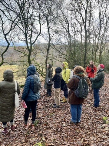 There were two creative writing workshops led by Sally Baker. These began with a mindful walk around Withens Clough reservoir, followed by a workshop at a nearby venue in Cragg Vale. During the workshop, participants experienced sphagnum moss by studying it with magnifying glasses, explored poetry about moorlands and moss, and created their own writing.