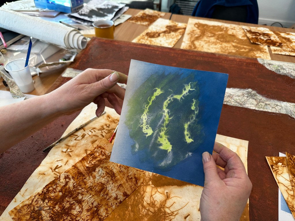 Sheila used her links with Calderdale College (from being artist-in-residence for the Sphagnum Moss Project) to organise and deliver the workshops for this group.