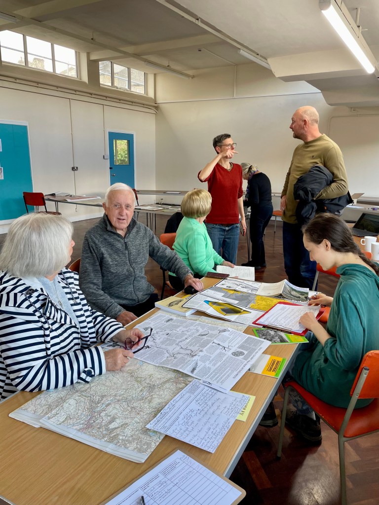 We held two “Story gathering” sessions in Todmorden and Mytholmroyd. These heritage gatherings were advertised through posters, local heritage groups and local history facebook groups and personal contacts. At the events, a variety of historical and environmental material and maps were available for people to peruse. Participants were encouraged to share their stories by talking to our facilitators, being recorded and sharing maps, articles and photographs.