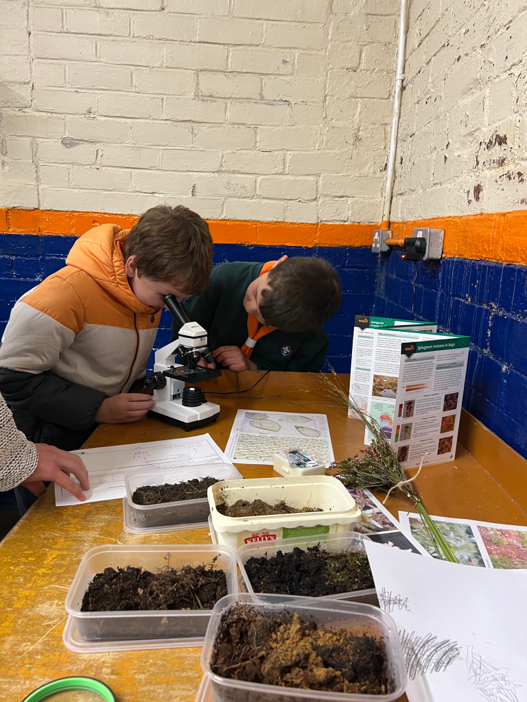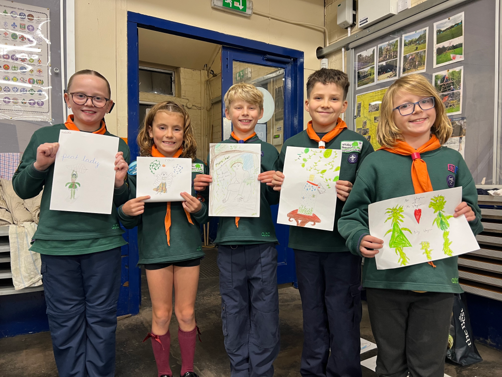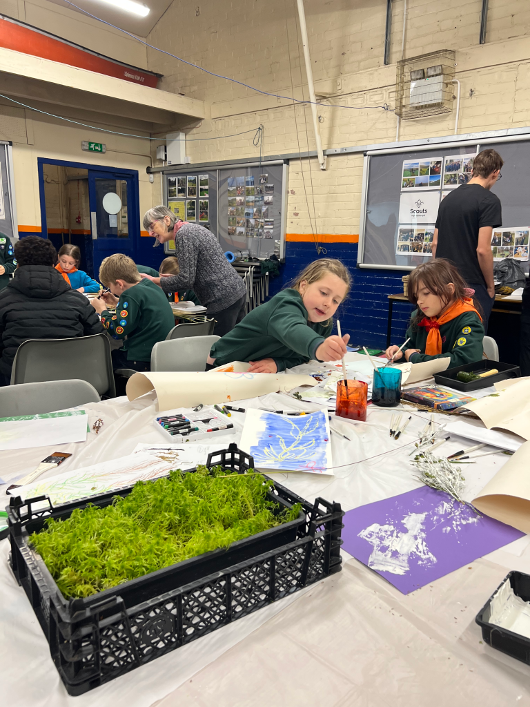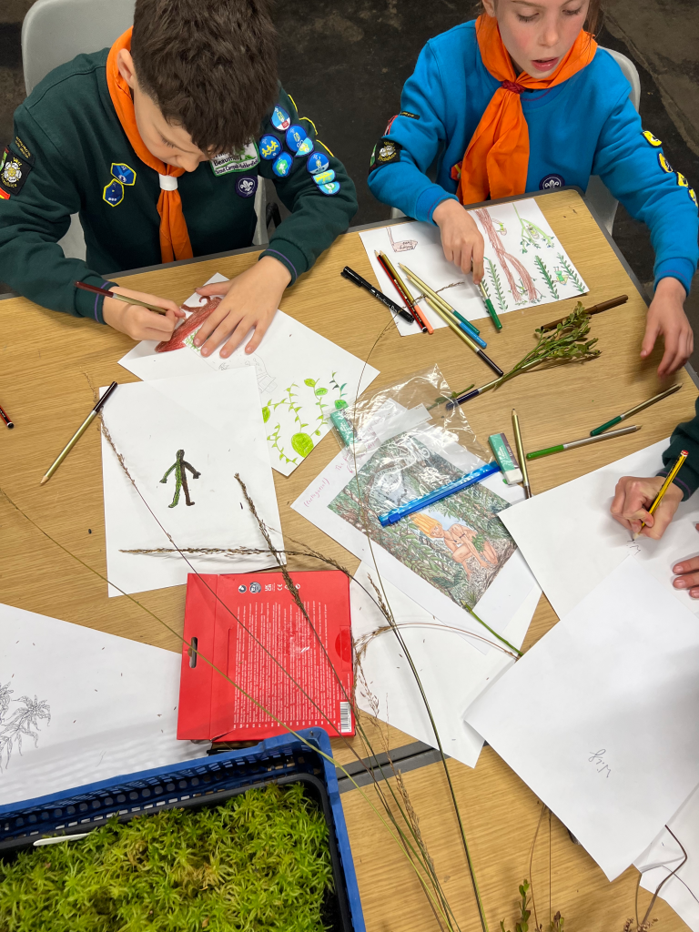 The nature walk was followed up with a creative science session, with the Cubs looking at sphagnum moss and soil samples, and creating artwork and illustrations inspired by the moorland plant community.
